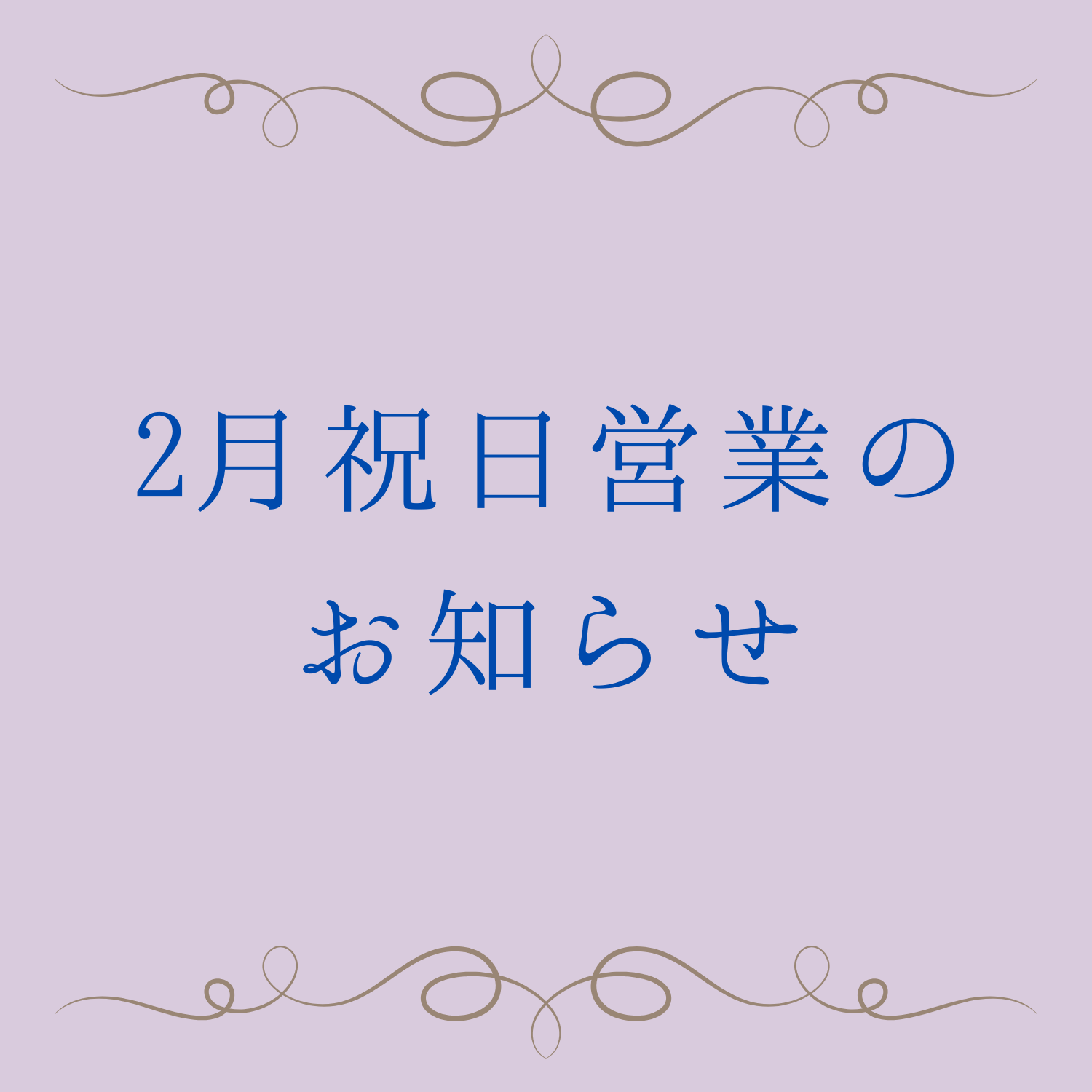 2月祝日営業のお知らせ